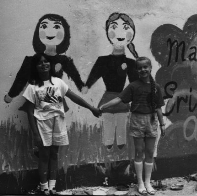 На снимке: Прототипы (они же художники) произведения "Masha from Russia, Ericka from America" (см. верхний снимок) Маша Солодухина и Эрика Гарсиа. Фото К.П.Рязанова, 1988 г.